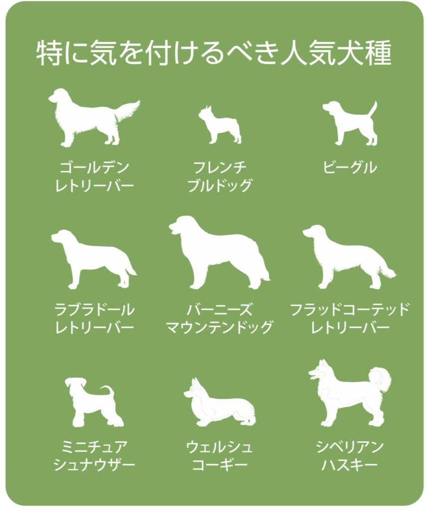 7歳以上のわんちゃんはもちろん以下の腫瘍になりやすいとされる若いわんちゃんにおすすめしています。