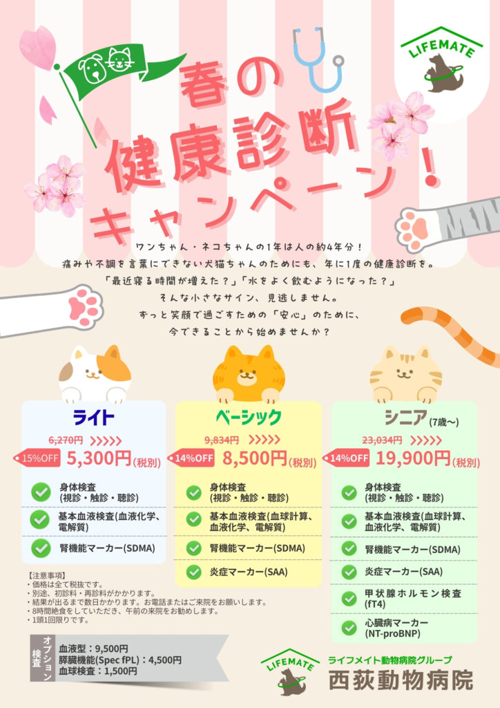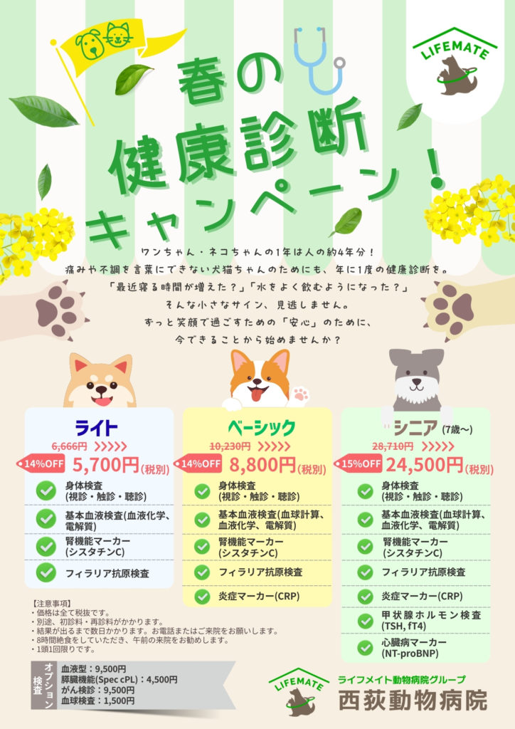 4月1日から6月30日までわんちゃん・ねこちゃんの健康診断キャンペーンを実施します。